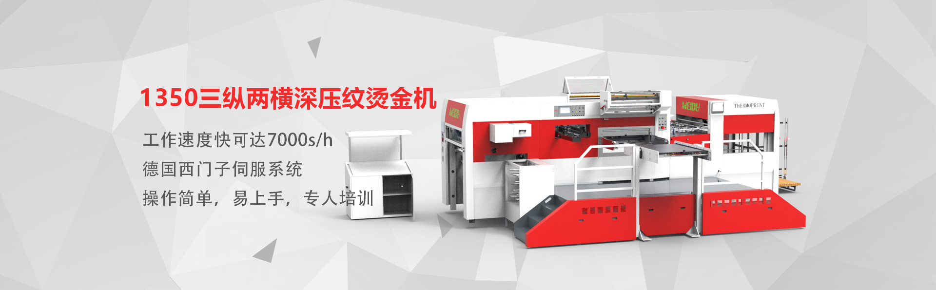 山東美度印刷設備有限公司是一家從事機械研究和制造的企業,主要產品包括全自動平壓平三縱燙金機、全自動平壓平三縱兩橫燙金機、全自動平壓平深壓紋模切機、全自動平壓平深壓紋燙金機、全自動平壓平模切機等系列產品。經過多年的發展,公司現已擁有多名的工業研發設計人員、經驗豐富的生產安裝人員及嚴謹認真的質量檢驗人員,從外購件檢驗、零部件加工、整機裝配、出廠檢驗等各個流程均有嚴格質量保證,從而保障了所生產設備的品質。